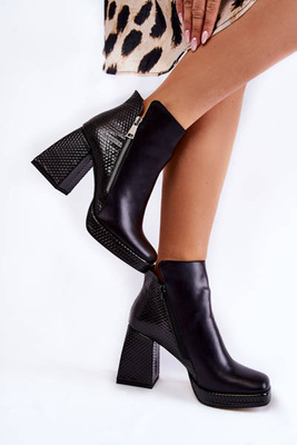 Leather Boots On High Heel Geometric Pattern Black Alienore