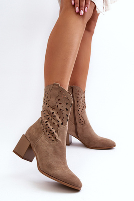 Women's Beige Suede High Heel Openwork Boots Zazoo 3166/P