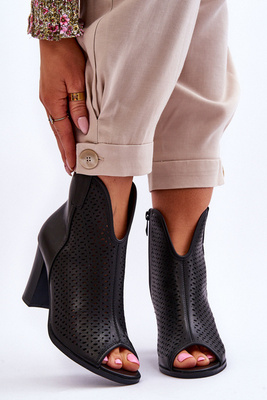 Fashionable Suede Openwork High Heel Boots Black Genevi