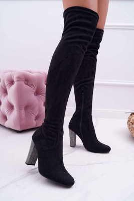 Black Suede Over-the-Knee Boots Musketeers Studs Almo