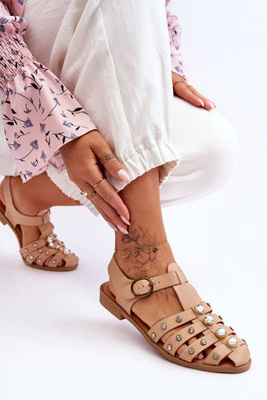 Suede Flat Sandals With Decoration Nicole 2744/067 Fuchsia