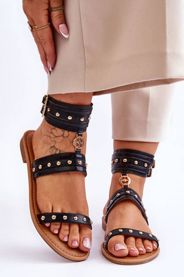 Unique Women's Sandals With Studs Black Selina