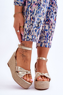 Tied Sandals On A High Wedge Fuchsia Lendy
