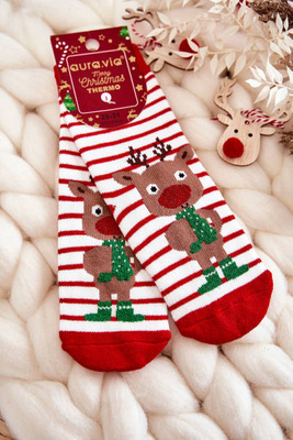 Children's Thermoactive Christmas Socks The striped reindeer red and white