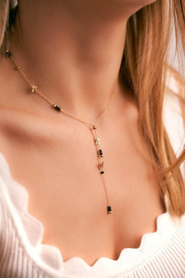 Women's Gold Necklace Chain Black Balls Flower Cecilia