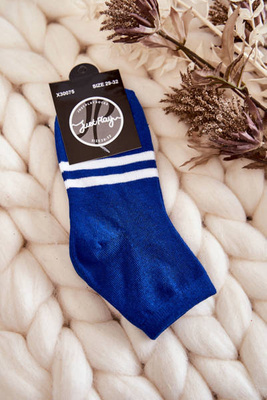 +4Youth Cotton Sports Socks With Stripes Navy Blue