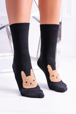 Women's Christmas Socks Black With Ears In Christmas Trees