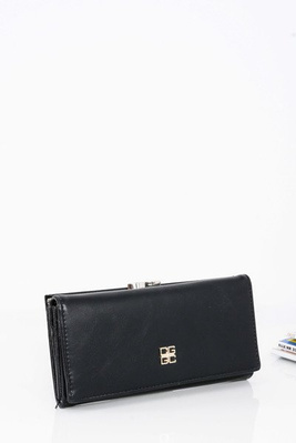 Large Women's Striped Black Wallet Gold Plated Hardware