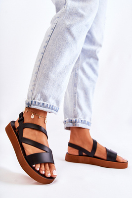 Women's Leather Sandals On Heel Laura Messi 2409 Black-White