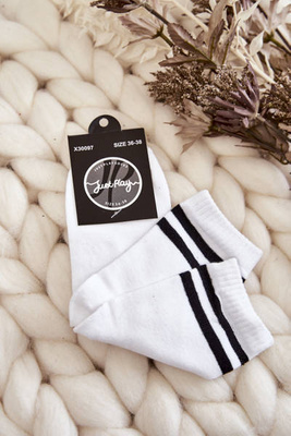 Women's Cotton Sports Socks With Stripes White