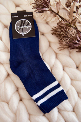 Youth Cotton Sports Socks With Stripes Navy Blue