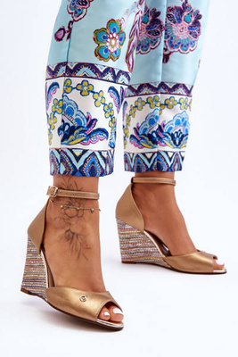 Leather Sandals On Wedge Laura Messi 2603/784 Gold