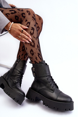 Women's Boots on a Chunky Platform with a Zipper Black Kusma
