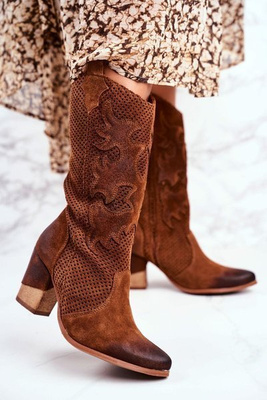 Women's Boots On High Heels Brown Fiber