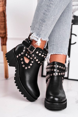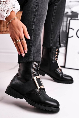 Women's Boots With Golden Buckle Black Happy Su