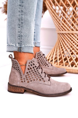 Women's Leather Boots On A Block Heel Maciejka Golden Beige 03963-20