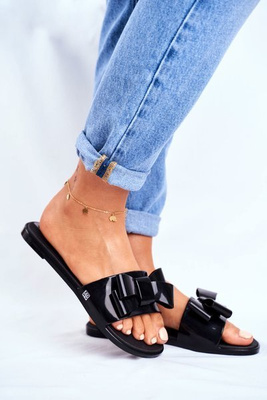 Women's Rubber Sandals Pearls Black Japanese Denise