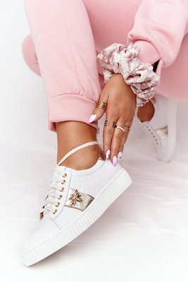 Women's Sneakers With A Zipper White-Gold Festival