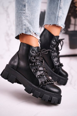 Women's Insulated Boots With Buckles And Ribbon Black Special