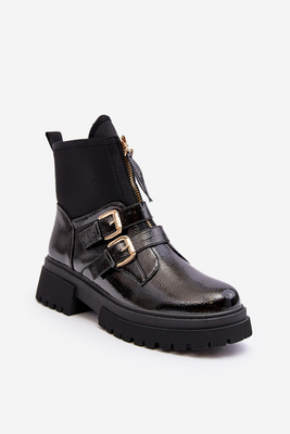 Women's Workery Boots with Decorative Embossing Black Tarolia
