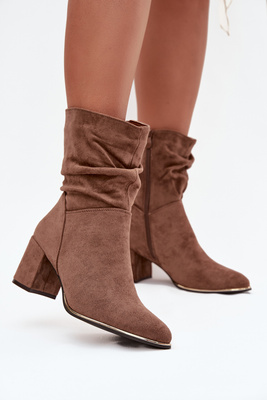 Insulated Women's Ankle Boots with Ruching on a Block Heel Brown Ivressa