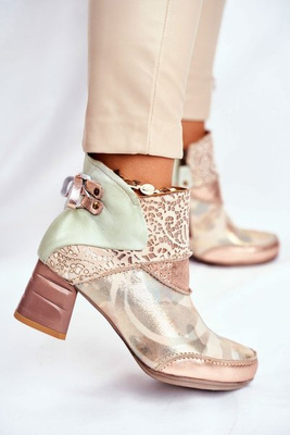 Women’s Leather Block Heel Boots Maciejka Beige 04833-04