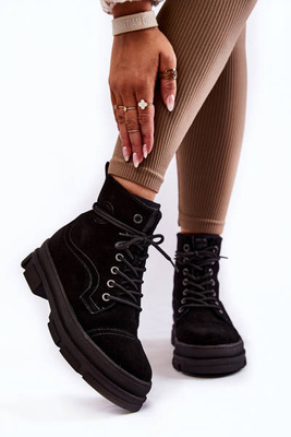 Women's Faux Suede Lined Lace-Up Ankle Boots Black Jailina