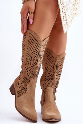 Suede Cowboy Boots On Low Heel Brown Lunah