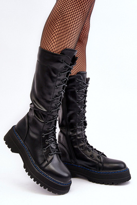 Women's Leather Boots on Massive Heel Black Lemar Odennia