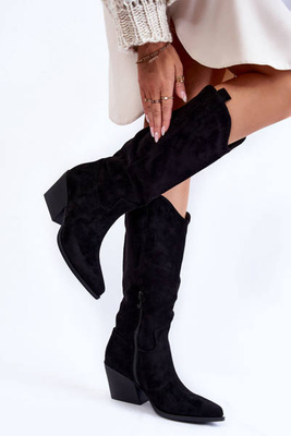 Women's Suede Openwork Over Knee Boots Black Savannah