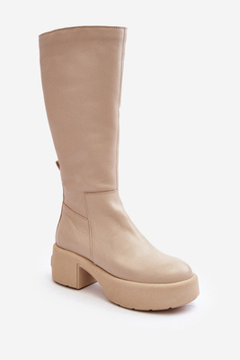 Leather Women's Knee-high Boots Lemar Light Beige Malayah