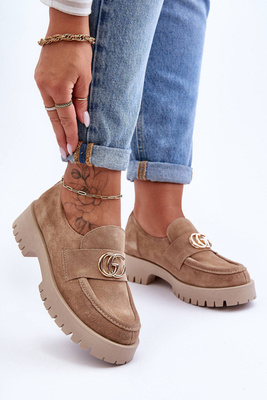 Women's Suede Shoes on Platform with Decoration Dark Beige Lewski 3398