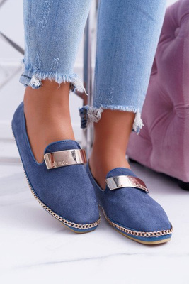 +2Women's Mokassins Lu Boo Navy Blue Chain Suede Panama