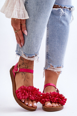 Women's Sandals With Textile Flowers Fuchsia Fiori