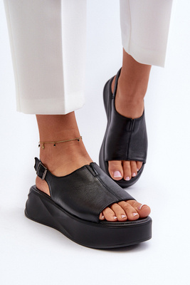 Black Women's Leather Wedge Sandals Vinceza 66624