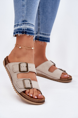 Ladies Foam Slippers With Golden Clips Light Beige Hortiana