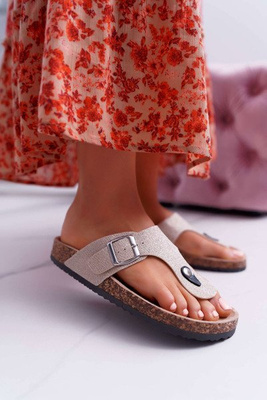Women's Rubber Zircons Beige Flip-Flops Derossa