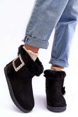 Women's Snow Boots On Platform Embellished With Rhinestones Black Silmo