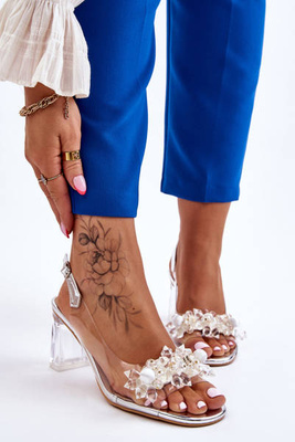 Heeled Sandals With Rhinestones Silver Jaxen