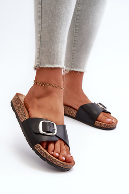 Women's Platform Sandals with Buckle Black Moaxi