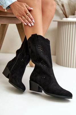 Openwork Women's Cowboy Ankle Boots Black Iceda