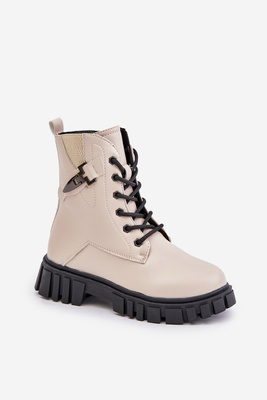 Warm Girls Ankle Boots With Zip And Decoration Beige Zinnirella