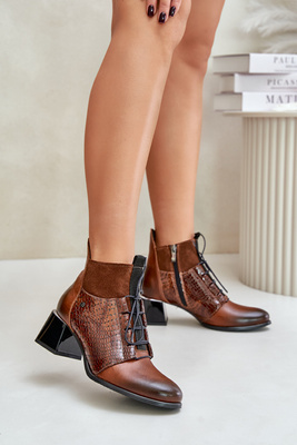 Zazoo 60503 Leather Ankle Boots Heeled Insulated Brown