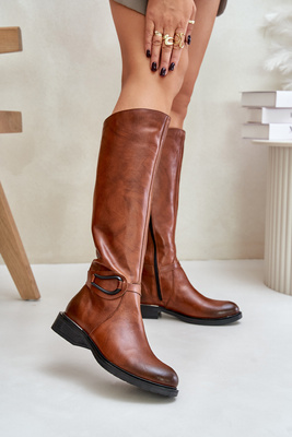 Zazoo 70140 Leather Knee High Women Boots Insulated Brown