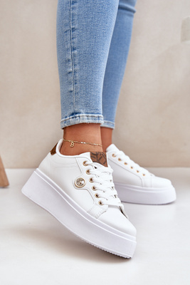 Eco Leather Sneakers On Platform With Golden Detail White-Brown Zingie