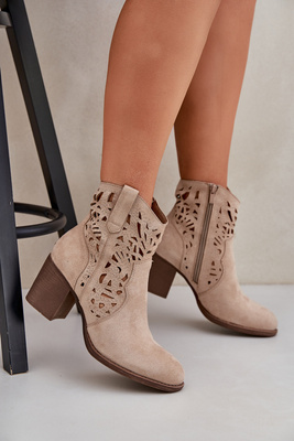 Perforated Ankle Boots On Block Heels Beige Nurissa