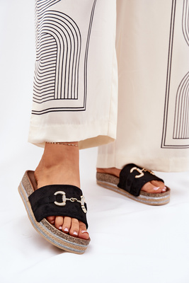 Womens Platform Sandals With Golden Decoration And Glitter Black Morisela