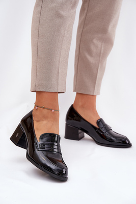 Lacquered Leather Women's Low Shoes With Heels Vinceza 18105 Black