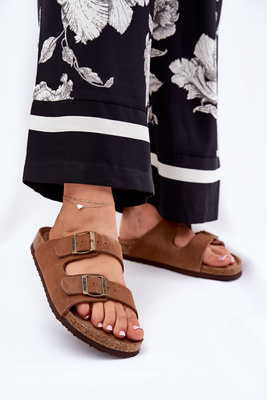 Suede Women's Slippers With Buckles Big Star RR274A394 Brown
