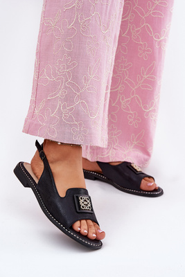 Elegant Women's Sandals On Flat Heel With Decoration S.Barski KV51-082 Black